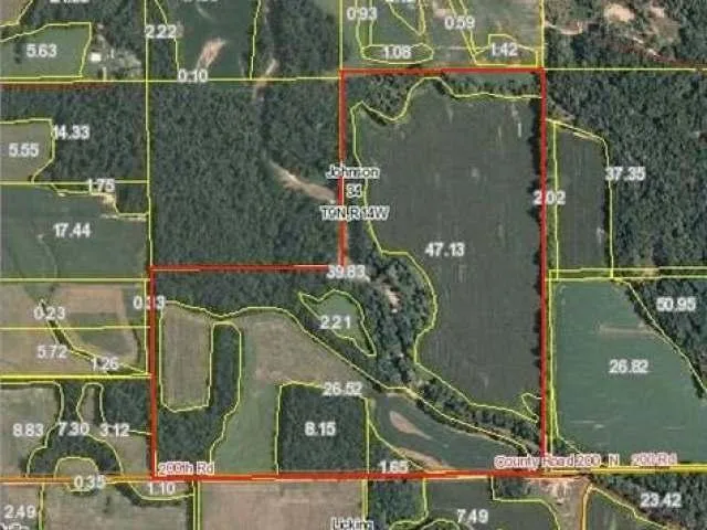 Illinois land for sale. +/- 120 acres total, +/- 75 acres tillable, 9 acres in CP33 field border program, +/- 45 acres wooded, +/- 7.9 acres CRP. Tillable fields are ideal food plot locations, and excellent year to year income. Tillable cash rent produces $7,590 per yr.CP33 income is $1422 per yr. for 8 more years. High deer density, with excellent genetics. Heavily traveled trails, and creek crossings. Isolated pockets of timber, field edges, and terrain changes. The North fork of the Embarrass River runs through the property.