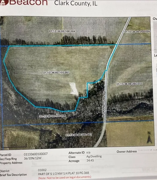 Nice all tillable farmland. Good soil, hard surface and the roadway is gravel. Located in Anderson Township, Clark County IL. From RT 1 turn left on Divider Rd, West to sign pointing S 500th (Grand Turn) proceed south 1/2 mile, sign on the farm