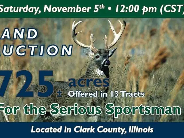 On-site land inspection open to the public Oct. 15th and 29th, 8 a.m. to 4p.m. Meet Travis Selby at the North Entrance in front of T4. 217-304-1686 Surplus Hunting Land For Sale. Purchase prior to auction for under $1,000 per acre! 2 miles of Wabash River Frontage, boating, fishing, camping. Excellent whitetail deer, waterfowl, turkey, small game, upland bird hunting. This farm and the immediate area is well known for producing Boone & Crockett's. Established wildlife food plots, elevated hunting houses. Mature timber, thick pockets of overgrown brush, water impoundments. Small and large tracts available. Own your Hunting Future! The farm is 725 acres total, with 667.87 acres enrolled in WRP. As you can see from the trail cam photos this property produces world class whitetails. The farm has over 2 miles of frontage along the Wabash River offering endless recreational opportunities. (Camping, hunting, fishing, boating, trapping) The Wabash River is a major flyway along the eastern border of Illinois producing fast pace waterfowl wing shooting year after year. The farm will be offered in 13 tracts allowing buyers an opportunity to purchase small and large tracts. You can bid on individual tracts or any combination of tracts. Contact Travis Selby for additional information. 217-304-1686