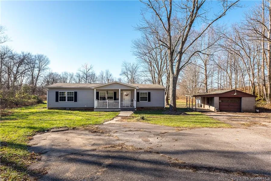 Private, secluded 3-bedroom, 2-bath, manufactured home on ALMOST 2 ACRES in Henryville! Peaceful location, with quick, easy access to I-65 and city amenities. Kitchen appliances remain. Detached, 1-car garage and a small shed. Square feet is approximate; if critical, buyers should verify. With an acceptable offer, seller will provide a carpet allowance for the master bedroom.