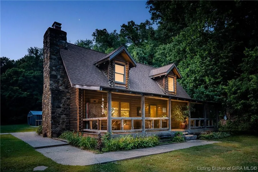 AMAZING PRICE IMPROVEMENT! Historic UTICA! Beautiful LOG CABIN overlooking the OHIO RIVER. A must see, this 3 bed 2 bath cabin sets one block away from the river. Nestled in woods and surrounded by the mighty cliffs with a river view! The huge limestone steps bring you up on the covered front porch and to the front door. When entering you step in to a great room with high ceiling and log beams. An enormous fireplace with a grand hearth is the focal spot to this room. The kitchen is adorned with all of the essential appliances and room for a sit in kitchen and also large dining table. Follow the hallway back to a large open room for relaxing, and entertaining and has a small covered porch to the outside. Along the hallway is a nice-sized laundry room with mechanicals and a hall bath. The upstairs is accessed by the special stairway where the "spindles" of the rails were hand crafted by local firemen. The master bedroom has the loft view and a spectacular view of the Ohio River. Two other bedrooms are at the opposite end of the hallway with a full bath in between. The garage with w/ carports 12.5 x 24 shelving, concrete. 30 x 40 pole barn with concrete floor , "man cave" with heat/air. The trees, foilage, cliffs , views are incredible all sitting on 2.7 acres which makes this home so appealing. CLOSE to I-64, town (Utica itself is adorable), river boating, fishing, and going across the bridge has never been easier!