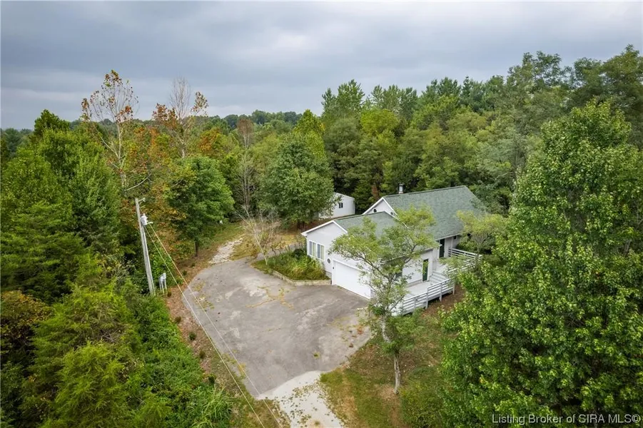 THIS IS IT!! Move in Ready! Custom Built, One Owner! TOTAL PRIVACY, Get away, Nearly 4 GORGEOUS WOODED ACRES, tucked away, in the Henryville Area w/Private drive. Maintained, UPDATED, 3/4 Beds and 2 FULL Baths. You will LOVE this one! BEAUTIFUL ACREAGE, w/Detached (24x32) Garage w/100 amp, water, concrete floor, room for car OR boat PLUS 2 Horse stalls, possible mini farm, or STORAGE! SKY IS THE LIMIT! Main floor with Lrg Great Room OPEN to Kitchen/Dining. NEW Wood Laminate, Wood Burning FP, Kitchen w/LOTS of Cabs and Counter Space for serving, ALL APPLS STAY including Newer Stainless dishwasher. Lrg Eat-in Dining, HEATED/COOLED Sunroom (possible dining Rm). Main/1st Floor hosts Main Bedroom w/ 2 Closets, Full Bath, PLUS Office/Bedroom! Lrg Laundry Rm and Washer/Dryer STAYS too!!! 2 MORE Beds and Full Bath Upstairs, 3/4 Beds ALL have NEW CARPET! Home w/OVERSIZED attached 2 Car Garage and 2 HUGE DECKS, Garden area and a creek that runs along the back of property. Septic pumped a/in last 3 years. ONLY 5 Min from I-65, 20 min to River Ridge, and ONLY 30 min to Louisville! Hurry! Priced to SELL!!!Sq ft & rm sz approx.