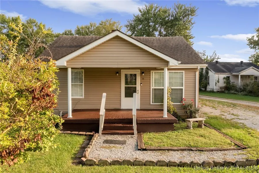 Discover the charm of this cozy bungalow in Henryville! With updated vinyl siding and a newer 3-dimensional shingle roof, this home exudes curb appeal and offers lasting durability. Enjoy quiet mornings or unwind in the evening on the inviting covered porch. Step inside to find an oversized kitchen, perfect for cooking and entertaining, complemented by beautiful hardwood floors. Some windows have been replaced, adding to the home's overall comfort and efficiency. One of the bedrooms features two closets, including a spacious walk-in. Plus, the property is conveniently in walking distance to Henryville schools. Don?t miss this great opportunity! sq ft is approximate if critical buyers should verify.