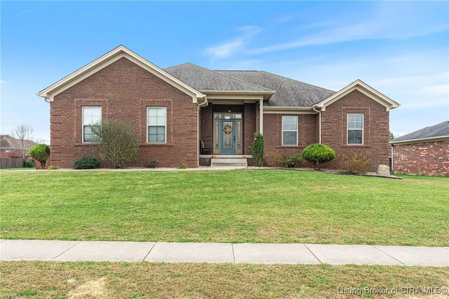 Beautifully maintained Brick home on a corner lot, just 2 minutes to I-65, 20 minutes to Louisville. This 5 true bedroom home with 3 full baths has the space to host many gatherings of family and friends. The Open concept , Living , dining and Kitchen, (granite counters) will make everyone feel at home. Fresh neutral paint throughout. 3 bedrooms and 2 full baths await on the right side of the home , the main suite is a peaceful place of rest with a walk in closet and it's own bath with dual vanity sinks. Walk downstairs to the newly finished daylit basement featuring full egress windows and all new LVP flooring , this area has two spacious bedrooms, one full bath, and very large family room ( with it's own mini-split so that you can heat and cool only when needed) Sit back and relax on your covered back porch overlooking your freshly sodded back yard, complete with raised beds for your garden and a privacy fence. This home is owned and maintained by a home inspector, it will be sure to please those looking for a move in ready, well taken care of home.