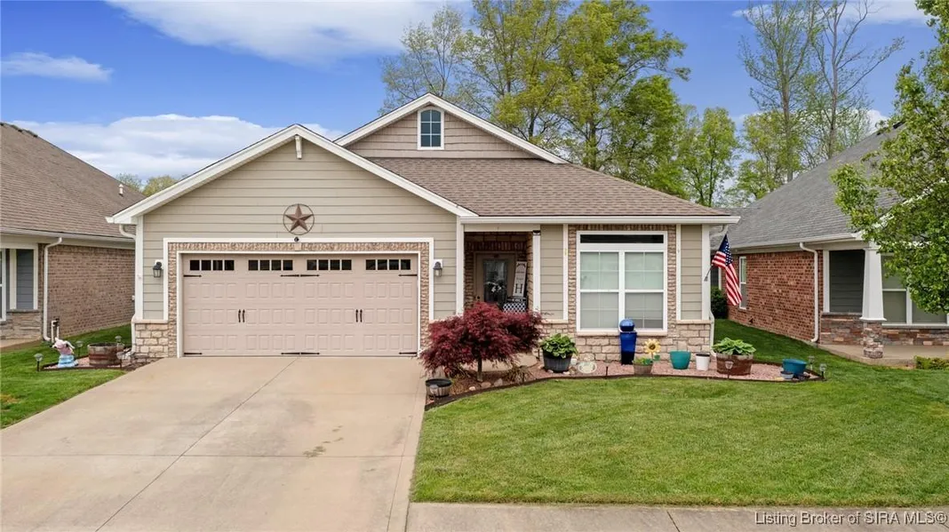 Have you always dreamed of living on a golf course? This stunning home is perfectly situated on Hole 14, offering breathtaking views and a serene atmosphere. Step inside to discover a spacious great room with soaring 12-foot vaulted ceilings, elegant crown molding, and an open kitchen featuring beautiful granite countertops, large breakfast bar, a range/oven, microwave, and dishwasher. The thoughtful split-bedroom design includes a luxurious master suite with a trey ceiling, crown molding, and a private bath that boasts a double vanity, jetted tub, separate shower, water closet, and a custom walk-in closet complete with built-in drawers, shoe racks, and shelves. Large laundry room. Enjoy two sunrooms? One off the master suite and another adjacent to the great room. For outdoor relaxation and entertaining, step onto the expansive 12x40 stamped patio, which features a firepit and spectacul...