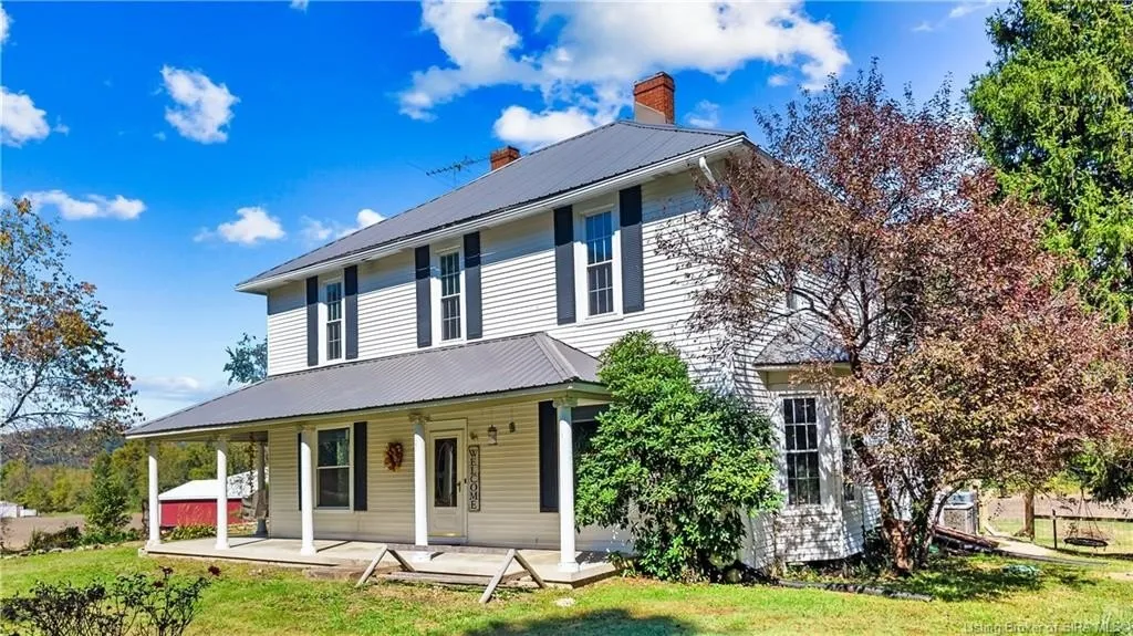 3 Miles from Hubers, 3 Miles from Deem Lake, 8 Miles to Covered Bridge Golf Course. Easy access to town with a little patch of land to call your own! Magnetized by the charm of an older farm house with no neighbors? Can you picture yourself sitting on the partial wrap-around, covered porch, swinging, reading your favorite book, watching the sunset? Sitting on close to 2 acres the picturesque view of this lovely 5 bedroom home will be sure to delight. Having a grand wooden staircase, beautiful original hardwood flooring, decorative fireplaces, oversized rooms, a window seat/reading nook, and an enclosed sunroom, there is so much being offered. The lengthy driveway and spacious dining room with large kitchen and pantry are great for family/friends gatherings and will be a nice benefit to the upcoming holiday entertainment season. The tall ceilings also allow you to bring home an impressive Christmas tree! Each floor has its own HVAC unit. The unit for downstairs was replaced in 2025 and the upstairs is just 8 years old. 3 Energy Star picture windows have been added. The roof was replaced in December of 2020. A decorative water pump is just beyond the front porch. Nice size deck overlooks the fully fenced in backyard and fire pit. Call today for your personal showing!