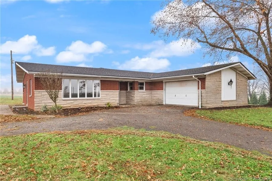 LOCATION! LOCATION! LOCATION! This well-kept brick ranch is move-in ready and offers comfortable living with classic charm. With 2067 +/- SF 3BR/1BA, you’ll have plenty of space, and the full unfinished walkout basement gives you room to grow or create your ideal workspace or gym. Recent upgrades, including hardwood floors throughout and add warmth and character. The kitchen features stainless steel appliances, generous cabinet space, and a handy built-in desk. Relax in the bright sunroom with a wall of windows and a mini-split unit for year-round comfort. Set on a spacious one-acre lot surrounded by scenic Southern Indiana farmland, you can enjoy peaceful evenings by the concrete firepit patio. A property you don’t want to miss out on!!!! --Real estate auction info--List price is not current bid amount. Selling as is without any contingencies. See Online Auction Property Packet for more details.