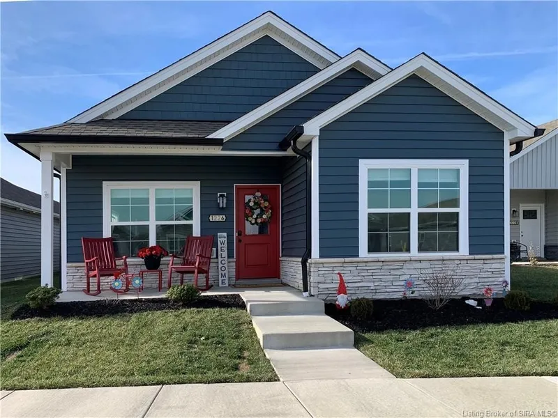 CUSTOM COTTAGE IN ELLINGSWORTH COMMONS! The most popular 'cottage style' floor plan, the beautiful MODEL J! This 3 Bed/2 Bath cottage home features a covered front porch, open floor plan, spacious great room, luxury vinyl flooring through the main living areas, and a large covered back patio! Huge kitchen with upgraded stainless steel appliances (includes the double-door refrigerator), granite countertops, large island w/ pendant lighting, and large pantry. UPGRADES INCLUDE: custom CEDAR BEAM running through the main living space of the home, elegant NAVY BLUE CABINETS, CEDAR SHELVES that create a "coffee bar", porcelain FARMHOUSE-STYLE kitchen sink, TILE BACKSPLASH, UPGRADED appliances and LIGHT FIXTURES as well as board and batten ACCENT WALL in the dining room. The primary bath provides a BLACK GRANITE double vanity, walk-in tile shower, a separate water closet with its own linen closet. This home also includes BRAND NEW 6" GUTTERS, a 2-car detached garage w/keyless entry. And... an EXTRA LONG DRIVEWAY. that holds 4 Cars! Community amenities include a Clubhouse, Fitness room, Pool, Walking Paths, several Lakes and a nearby Dog Park. One of the sellers is a licensed real estate Broker in the state of Indiana.