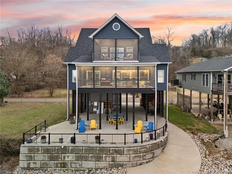 Located near the East End Bridge and designed for ultimate river viewing, gorgeous sunsets & entertaining! This includes the buildable lot across the street that has boat storage and a gravel parking pad. Custom built by Elliss Construction in 2022 per FEMA code with thoughtful detail given to aging in place, this home provides comfort & ease of living. The elevator travels from the ground to all levels of the home. There are 3 en suites with large walk-in closets. The main floor is open w/a huge kitchen, dining space, living room, en suite bedroom, walk in pantry, half bath, an enormous storage room and a gas fireplace. Walk out to the screened in porch to watch the boats go by. Two more en suites are on the 2nd floor with one currently being used as a primary, and includes another screened porch and gorgeous bath and coffee/wine bar area. Thoughtfully planned with abundant storage and spray foam insulation. Selby House custom blinds for the bedrooms provide black out or day light. The piers for a new dock are there & the poured concrete path to the steps provides easy access to boat life. Tons of upgrades include tankless water heater, security system (Buyer to take over if desired), custom mantle, gas fireplace, Amish built cabinets and so much more. Minutes from the CCC in Utica and across the river from Captains Quarters. Come see what river life is all about! Sq footage, taxes, & school systems to be verified by the buyer(s)/Buyer's Agent if critical to the buyer(s).