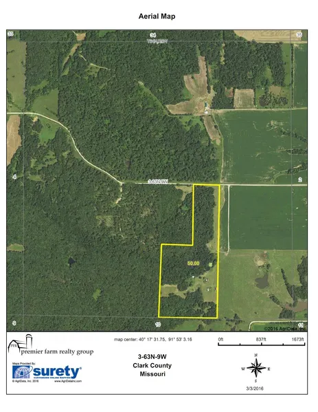 Picturesque 50 acres located in southern Clark County, Missouri. Clark Co property is hard to find, especially smaller, affordable tracts with good deer and turkey hunting. Clark Countys north border is the Iowa, so the deer here are BIG! Approximately 35 acres of timber with the balance in potential tillable ground that is currently in hay production. Notice on the aerial the small inner fields that are smokin spots for food plots! There is a 30x40 wood frame, metal exterior building that is currently under construction, with 2 bedrooms and 1 bath, kitchen and family room. Electricity and county water are also on the property.