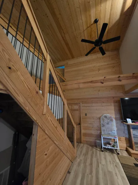 Step inside and you'll be greeted by a grand open staircase wrapped in classic car siding, with shadow-box windows that let the natural light pour in. The open feel carries right out to the deck off the dining roomperfect for sippin' coffee, watchin' wildlife, or unwindin' at the end of the day.