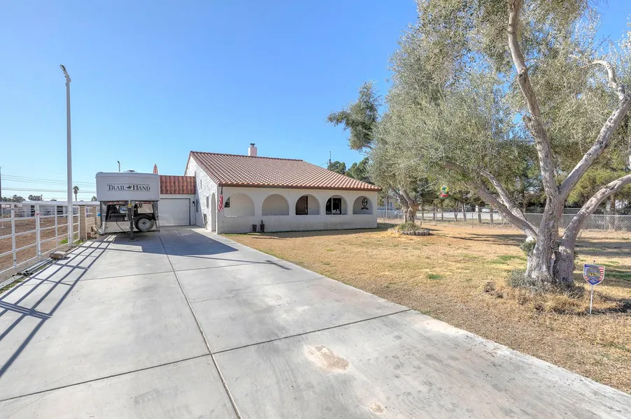 Spanish Bell Ranch- Gorgeous custom home on over 1 acre of horse property! Oversized arena & barn, 11 12X24 covered stalls, covered hay storage, owner tack room with additional outbuildings. Beautifully renovated X-large home with new flooring throughout. Formal living & dining rooms, spacious family room with wood-burning fireplace. Two bedrooms downstairs with a full bath. Separate master suite with retreat & balcony from the 2nd floor.