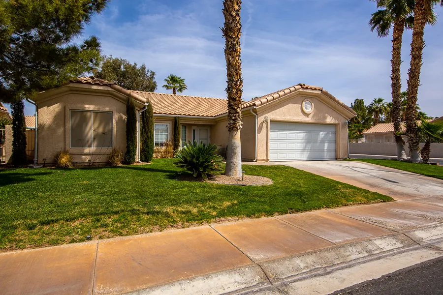 Great location, no HOA, corner lot, a large pool and potential for RV/boat/ATV parking - what's not to like? This well maintained, nicely appointed and upgraded 3 bedroom home has been lightly used as a vacation home. It features a reconfigured and remodeled kitchen, with stainless appliances and a dining area and it all opens to the living room. Tile floors throughout except for bedrooms, which have new carpet. This is a great floor plan with two guest rooms and guest bath located on one side of the house and master bedroom with en suite bath & two closets located on the other side. Laundry has extra storage. Enjoy the enclosed back patio - glass accordion doors can be shut or opened bringing the outdoors in and easy access to the nicely landscaped and walled backyard with a large heated pool. Backyard also includes a small separate stuccoed building with keyless entry, glass doors, a f...