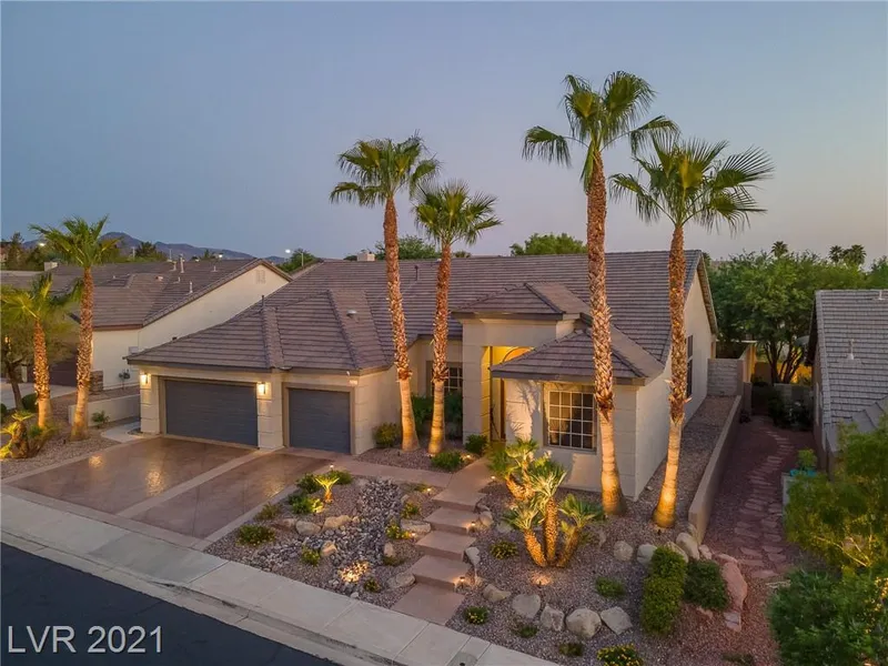 *STUNNING AND IMMACULATE* This beautiful Green Valley Ranch Single story home is located in the Mystic Bay community. Bright and open floorplan boasting tall ceilings. Entertain in the gourmet kitchen with plenty of cabinetry, pantry, custom tile backsplash, built-in appliances, granite island along w/ formal dining room & breakfast nook. Entertain in the living room or spread out into the open family room featuring a gorgeous stacked stone fireplace, media niche and custom cabinetry. The primary retreat features a large sitting room where you can relax with a 3-sided fireplace. The luxurious en-suite features gorgeous granite sweeping the dual vanities, separate soaking tub and step in shower. Plantation shutters are throughout. Large back yard with an expansive covered patio, jetted hot tub, manicured lawn, mature trees, and desert shrubs. Three Car Garage features epoxy flooring and c...