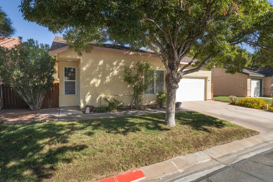 This 1218 sq ft home has two bedrooms, two full bathrooms, and a two-car garage.