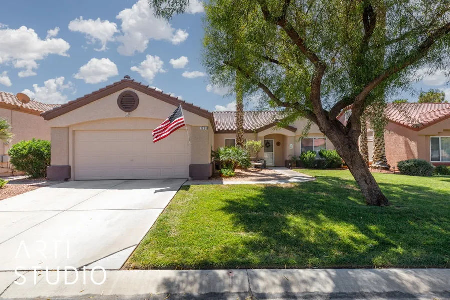 Step into 1206 Indian Wells Rd. and experience the best of luxury gated living at Sunset Greens! This popular floor plan offers two beautifully appointed bedrooms, one office/den, and two bathrooms. As you enter, you are greeted with a bright and neutral wall paint color accented by vaulted ceilings and natural light. The kitchen boasts matching upgraded island countertops with a custom backsplash. You will also find a Krystal-Pure triple stage reverse osmosis system and a Bosch electric mini-tank water heater under the sink - both newly installed. All of the appliances, including a Samsung washer/dryer, can be enjoyed without any additional cost. Convenient ceiling fans are in every room, including two on the back patio area, making this the perfect spot for your summer gatherings. Both bathrooms showcase a double vanity set up with the primary offering a walk-in shower and the secondary featuring a bathtub. The garage has been meticulously cared for and includes storage racks for added convenience. Relax and unwind in your private backyard oasis featuring a lush, green lawn, a covered patio with installed curtains for extra shade, built-in BBQ area, and two tranquil water features. To complete the look, epoxied flooring and extended pavers will stay with the property. Welcome home to 1206 Indian Wells Rd!