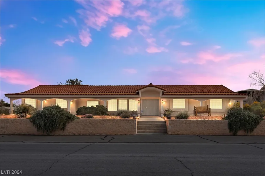 Welcome to this custom ranch home perched on an oversized CORNER LOT with breathtaking VIEWS of the Las Vegas strip. Enjoy this 4 car garage and tinkering in the fully insulated 700 sq. foot workshop with 220 volt outlet. Plenty of room for all your toys with the convenience of NO HOA! Enjoy both the front and back yards from your covered porch or wander through the walking paths amid tranquil gardens. Additional enhancements include epoxy-sealed garage floors, solar screens, plantation shutters throughout, new dish disposal, granite counter tops, Anderson french doors and cedar-lined closets.