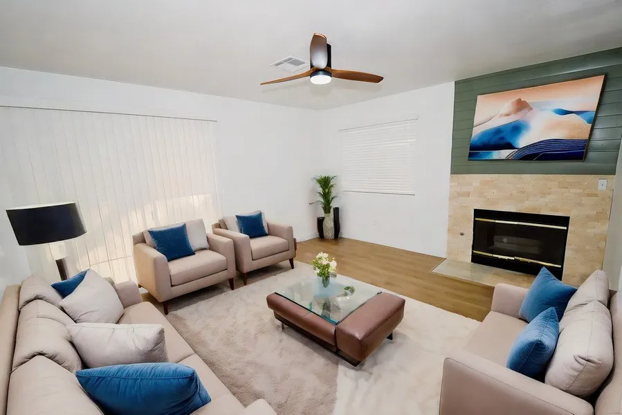 Resort Style living in this gorgeous updated first level condo in gated community with rental restrictions. 2 BR, 2 BA, Beautifully updated kitchen with new recessed lighting, stainless steel appliances and a wonderful breakfast bar with bubble glass pendant lights. New Luxury Vinyl plank flooring and new carpet. Updated lighting adds a beautiful touch to this lovely home. Living room boasts a stack stone fireplace. Patio off living room with a large storage room. Newer HVAC system, only 5 years old. Echo Bay offers many amenities including pool, tennis courts, park area, club house, fitness center and walking trail. Lots of guest parking and near shopping, schools and public transportation. This beautiful condo won't last long. Come take a look!!