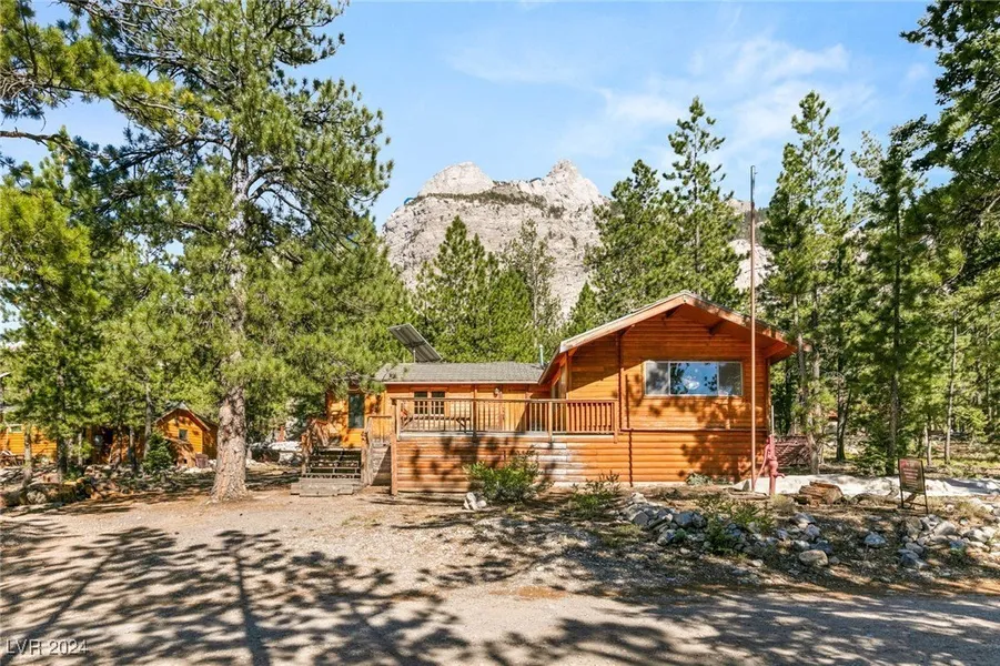 Nestled in the serene, gated community of Camp Lady of the Snows, is a rare opportunity to own a piece of Mount Charleston paradise. This property could be developed as (Five) 5 individual cabins or as one large lot totaling over 1/2 acre, making it the largest building lot in the subdivision. Selected as the "pick of the litter," each lot has community water access and year-round road maintenance. Built in 1962 by the original Developer, this enchanting 898 sq. ft. log cabin offers 2-bedroom, 1-bath and sits on 5 premium contiguous parcels, totaling over 0.50 acres. Skylights bathe the living space in natural light, while a welcoming fireplace and spacious sun deck provide cozy, scenic living. The additional parcels offer endless potential for privacy, expansion, or development into individual cabins. Just one mile from Ski Lee, the premier Ski and Snowboard Area for Las Vegas. Seize th...