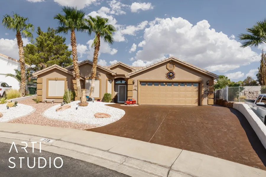 Welcome to this stunning NON HOA home located at 773 LOS PADRES in a desirable quiet cul-de-sac. This home has been exceptionally upgraded. Upgrades included are - stamped and sealed driveway, sleek epoxy finish in the oversized (646 Sq Ft.) three car garage, exterior and interior two tone paint, 8 hard wired security cameras, exterior sun shades on all windows plus a mechanical/retractable patio shade, which provide comfort from the sun and new wrought iron fencing/gate. Enjoy this 2 bedroom home that comes with a versatile office that can easily be converted into a third bedroom. Step inside to discover elegant new granite countertops throughout, tile backsplash and ceiling fans in all rooms for comfort including one in the garage plus two in the patio area where you can enjoy peaceful times near the large running waterfall or in your pool with views to the west - sunset views. Enjoy the oversized car that comes with a sink and overheard storage plus. Best of all the appliances in the kitchen, laundry area and the water softener will stay for free including the large oval shaped pool and outdoor shed. Take the first step toward your dream home today... This gem won’t last long!