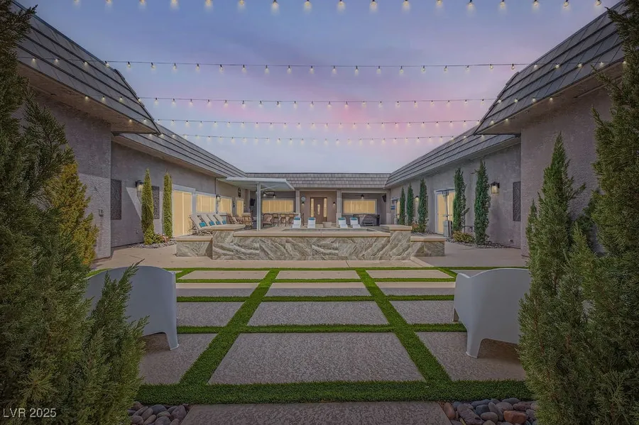 Welcome to a beautifully upgraded 1-acre estate in Mission Hills Rural Preservation, offering the perfect balance of privacy, functionality, and outdoor luxurywith no HOA. The resort-style courtyard features a solar-heated 43' x 21' pool with waterfalls and wet deck, Marquis spa, built-in BBQ with bar seating, pergola, firepit, covered patio with misters, and lush landscaping throughout. Inside, enjoy a thoughtfully designed layout with a chefs kitchen and large island, custom closets, built in bar, updated flooring, and a spacious primary suite featuring double barn doors, a spa-like bath, and a private garage entry. Additional highlights include gated RV parking with hookups, new roof tile, plantation shutters, water softener, filtration system, 3 A/C units, security system, and more. This home blends quality, comfort, and outdoor living just minutes from Las Vegas.
