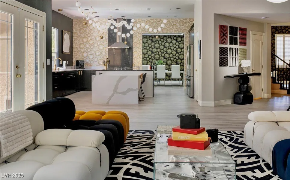 Thoughtfully upgraded in all the right places, this gated Green Valley Ranch home features an open, airy floor plan with soaring double-height ceilings upon entry. The chef’s kitchen is loaded with top-of-the-line appliances, dual refrigerators & dishwashers, a spacious dining island, & a prep sink. Just off the kitchen, the living room showcases a beautiful custom bar with 2 wine fridges—perfect for hosting! 1 bed & full bath are downstairs, with the remaining beds & baths upstairs. 2 beds were transformed into a fantastic movie theater. The expansive primary suite has 2 outstanding custom walk-in closets, a 2-way fireplace, & a balcony. The resort-style backyard is made for relaxation & entertaining. Unwind in the bubbling hot tub, practice on the putting green, or gather in the sunken lounge, complete with a striking stone fire table & custom stone TV wall. Prime location in a quiet n...