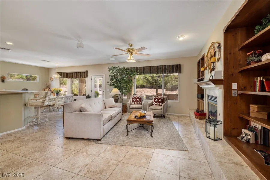 Oversized corner lot on a cul-de-sac with a popular Monroe floor plan in Sun City Anthem! This well-maintained home has been lovingly cared for. Gated front courtyard and security door. Interior upgrades include tile flooring in all the main living areas, gas fireplace and raised hearth with built-in media shelves. Kitchen has plenty of counter space, a breakfast bar for additional seating and builder-option extended counter/cabinets in kitchen nook area, which also includes a bay window. Retreat to your primary bedroom, which has a large walk-in closet and a convenient exterior door to the backyard. Laundry room has additional office space. Backyard features a covered patio and easy-care landscaping. All appliances are included! Sun City Anthem is the pinnacle of a fabulous 55+ age-restricted lifestyle where residents enjoy 3 Clubhouses, 2 restaurants, 2 golf courses, swimming pools/spas, tennis, pickleball, club activities, and an amazing social calendar! Don't miss out on this gem!