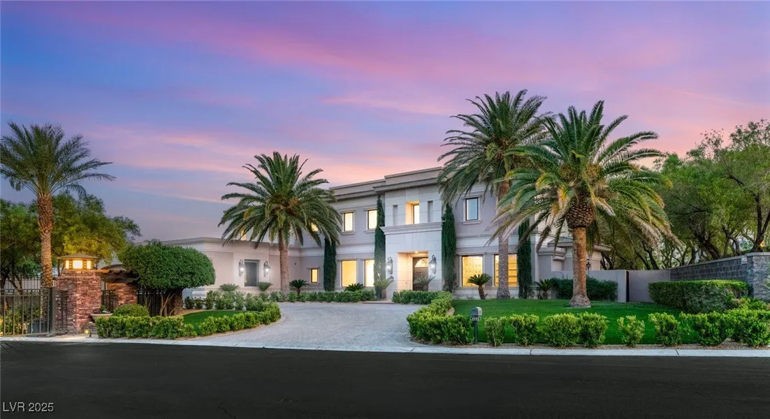 Perched on a premier lot in Red Rock Country Club, the two-story reimagined estate offers an exceptional blend of modern luxury, craftsmanship and breathtaking views. 8,724 square feet of interior space including 5 bedrooms, an office, den, 6 bathrooms and a 4-car garage, this home has been meticulously renovated to the highest standard, showcasing level 5 designer finishes. Soaring ceilings and walls of glass flood the home with natural light and an open floor plan. The elevated setting captures panoramic views of the surrounding mountains and a tranquil water feature at the lush golf course. Canadian white oak herringbone floors, custom vanities and fluted marble fireplace walls. The spacious primary bedroom has a sitting room, double closets and spa-like bathroom. The pool has been completely upgraded with pebble tech, stone coping, and designer tiles. Located in the heart of Summerlin, Red Rock Country Club is one of Las Vegas’ most coveted communities.