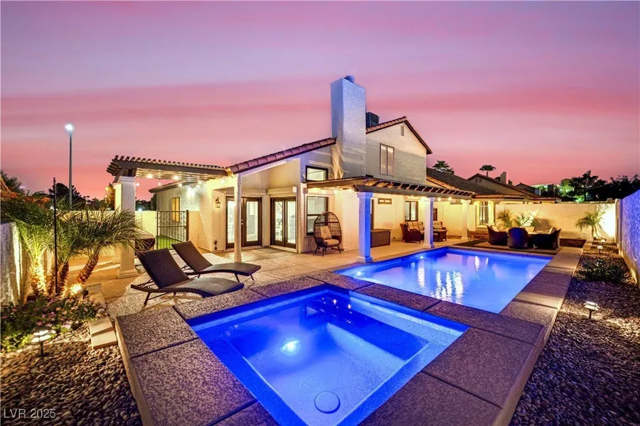 This beautifully upgraded home delivers the ultimate in versatile living with a rare chance to purchase it alongside the neighboring property at 8039 Aspendale. Together, the two residences create endless possibilities multi-generational living, a home plus income setup, or your own private retreat. Recently remodeled and move in ready, this property blends modern finishes with the kind of opportunity that’s nearly impossible to duplicate in Las Vegas. Enjoy security shutters for peace of mind and the freedom of no HOA restrictions. Step outside to take in sweeping Strip views, unforgettable sunsets, and stunning mountain backdrops that capture the true Vegas lifestyle. Ideally located just minutes from Allegiant Stadium, the Strip, and Harry Reid International Airport, this home isn’t just a place to live it’s a chance to own a piece of the Las Vegas dream.