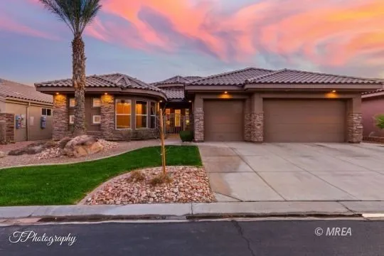 GORGEOUS HOME overlooking the 18th hole of the Falcon Ridge Golf Course! This (2778 Sq Ft) 3 Bedroom, 3 Bathroom plus 3 Car Garage Home is located in the Highly desired Falcon Crest Gated Community. Upon entering you will be in Awe with the Grandeur of this Home! Beautiful Architectural design w/Rounded Entry plus a set Tile Medallion in the Floor, High Ceilings, Curved Walls and Arches, Floor to Ceiling Windows, Stone Wall in Great Room and 8' Doors throughout. Kitchen w/Elegant Granite Countertops, raised Dishwasher, Center Island, Hidden Pantry and Solar Tube for additional light. Dining Room w/Corner Windows and Patio Access. Spacious Primary Bedroom w/cornered Windows and Patio Access as well. Luxurious Primary Bathroom with Marble Floors, Countertops, Shower and Garden Tub Surround. Large Walk-In Closet. 2 Guest Bedrooms w/shared Full Bathroom. Laundry Room w/Sink, Lots of Cabinets and Counter Space. Home also has Central Vacuum. Radiant Barrier in Garage as well as insulated Garage Doors, and additional Storage Closet. Lovely Covered Patio w/Amazing Views of the Golf Course, Mountains and Valley! Swim Spa/Hot Tub is included! Perfect Home for Entertaining