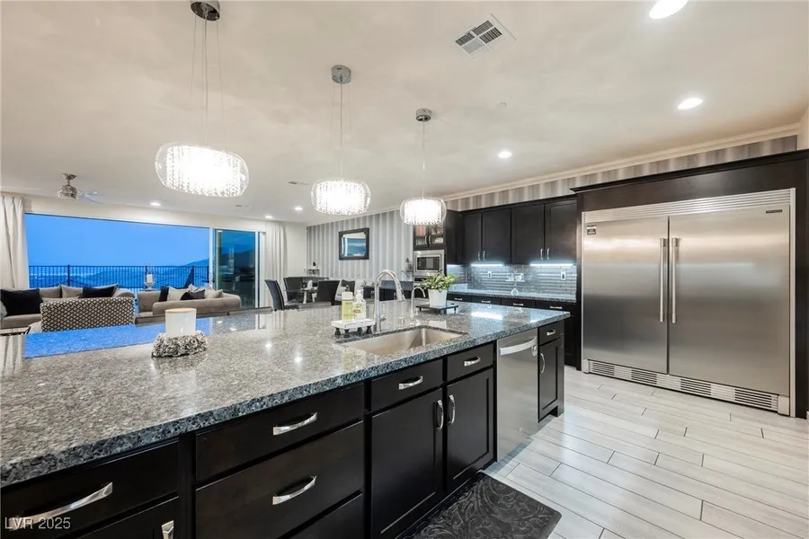 Experience elevated luxury in this 5,288 sqft (5,700+ with Loggia) Las Vegas estate designed for those who value elegance and modern sophistication. Featuring five refined bedrooms—including a serene first-floor guest en-suite—and five spa-inspired baths, this residence exudes timeless comfort. Indoor-outdoor living flows effortlessly with panoramic Strip views, a sparkling pool, soothing spa, fully equipped outdoor kitchen, and a private Loggia off the primary suite—perfect for relaxing or entertaining. Inside, enjoy designer finishes like intricate crown molding, four fireplaces, a culinary-grade chef’s kitchen, a temperature-controlled wine gallery, and elegant California Closets. State-of-the-art amenities include full home automation, theatre-quality surround sound, integrated audio, and a premium security camera system. An oversized 3-car garage and over $500,000 in upgrades comple...