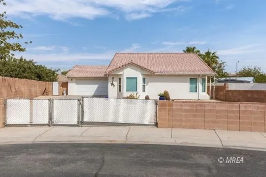 Beautifully updated 2 bed, 2 bath home with no HOA! Centrally located within driving distance to parks, shopping, and dining, this home offers stunning mountain views from both the kitchen and living room. Inside, enjoy modern color tones, stainless steel appliances, ample prep space in this kitchen and an open, airy layout. The exterior features low-maintenance desert landscaping, a fenced backyard with extended patio, and open parking access from the neighboring street, plus an attached two-car garage. Bring the RV and all your desert toys. A perfect blend of style, comfort, and location-ideal for homeowners or investors.