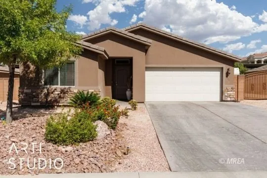 Step into the home you've always dreamed of-right here in beautiful Mesquite, NV! This beautiful single-story property features a well-designed layout that includes 3 bedrooms and 2 bathrooms, a spacious open-concept living room, and a dining area adjacent to a kitchen with stainless steel appliances and granite countertops. The primary suite offers a walk-in closet and a private bath, ensuring a perfect private retreat. Additional bedrooms are generously sized and versatile. Tile flooring throughout the main living spaces makes maintenance a breeze, complementing the warm and inviting interior design. Step outside to enjoy the covered patio, an ideal space for relaxing or entertaining guests, with a low-maintenance yard that includes mature landscaping. The two-car garage provides ample storage, and the home's appealing facade ensures great curb appeal. Located in a great neighborhood w...
