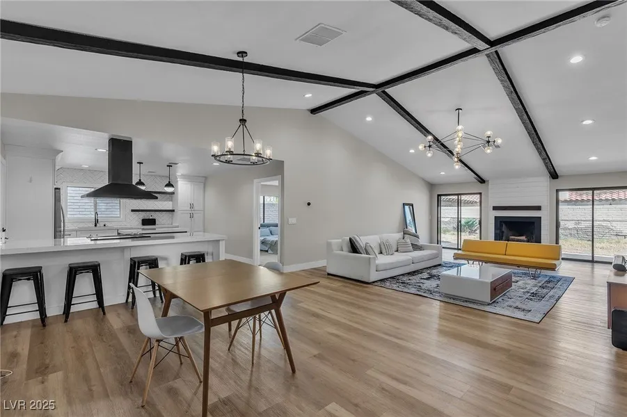 Guard-gated Spanish Oaks stunner—fully renovated single-story (1,964 SF, 3BD/2BA). Soaring vaulted beams, open plan, and a designer kitchen with island. New AC & water heater. Enjoy six pools, tennis, pickleball, and a two-story clubhouse along tree-lined, low-traffic streets. Turnkey living in a classic central Las Vegas enclave.