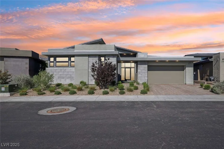 Experience elevated desert luxury in this single story Sandstone model by Toll Brothers, the guard gated Mesa Ridge Overlook of Summerlin. This 3,465 sq ft modern masterpiece features 3 ensuite bedrooms, 3.5 baths, a 3 car garage, soaring ceilings, Wolf and Sub Zero appliances, quartz counters, and full smart home automation. Enjoy seamless indoor outdoor living with a heated pool, spa, porcelain patio, and resort style amenities.