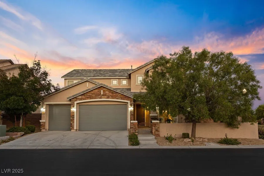 Pride of ownership shines in this 5 bedroom home in Providence, lovingly maintained by its original owners. Located in a gated community surrounded by mountain, city, and Strip views, this home features a DOWNSTAIRS PRIMARY SUITE with a massive closet and private laundry hook-up, plus 4 generous bedrooms and a spacious loft upstairs that opens to a 50ft balcony with 180° panoramic views—perfect for watching sunsets & firework displays! The kitchen is an entertainers dream with wrap around granite countertops, double ovens, 5 burner gas range, large prep island, and TONS of cabinets. A separate dining room doubles as a flex space. The pool-sized corner lot offers privacy, a great side yard for a dog run or play area and extra guest parking. Warm color scheme, rich wood cabinetry, brand new carpet, and fresh paint throughout. Located just 15 min north of Summerlin with easy access to shopp...