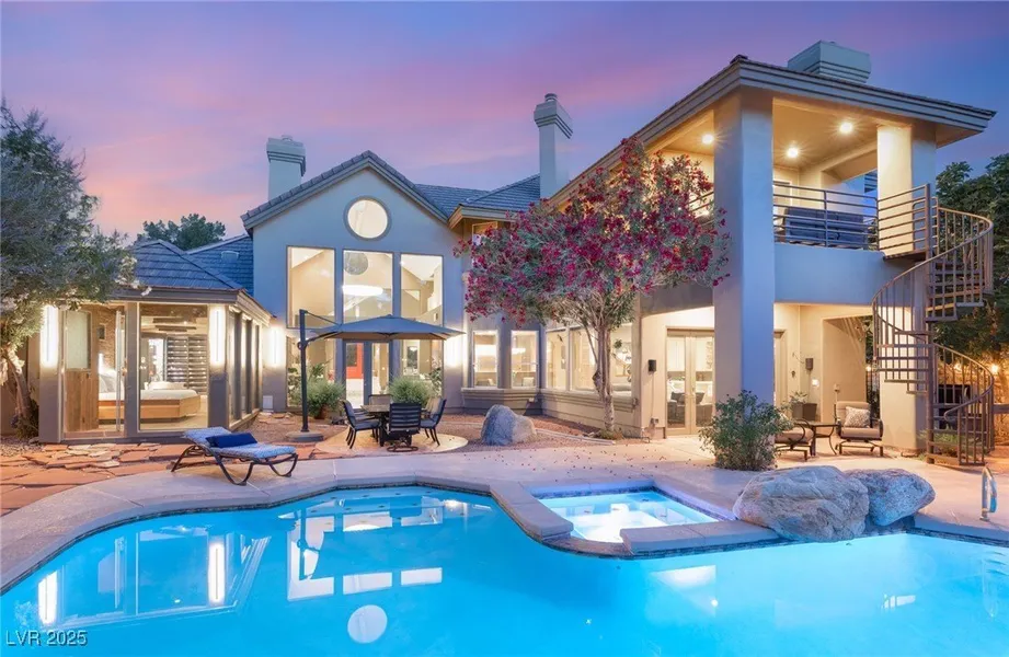 One-of-a-kind home with stunning architecture, multiple remodels and upgrades including Solar and Powerwalls to provide 80-90% of the power for free. 3 NEMA 14-50 outlets to charge your electric vehicles. NEST security cameras secure the perimeter (and the surrounding Astoria Estates community). Stunning multi-color metallic epoxy flooring ties together the downstairs living spaces and large format marble look tile decorates the entrance, living and dining areas. The master suite is truly a luxurious retreat complete with waterfall, infra-red dry sauna, 11 digitally controlled shower heads and relaxing soak tub in the center of it all. The master bedroom looks out on the lush green grounds and swimming pool with floor to ceiling windows. The master closet is three stories with 2 chandeliers & bay windows This house is not your typical Vegas home. It features detail & soul that is missing from most of the high-end luxury homes that dot the Las Vegas and Henderson valley. Option to buy!