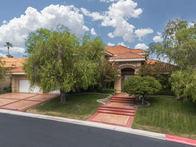 Stunning custom home on nearly 1/3 acre in prestigious guard-gated Canyon Gate, featuring striking architecture, majestic vaulted ceilings & breathtaking golf course, water & mountain views. Main level offers a spacious primary suite plus 2 ensuite bedrooms, private office & open living areas filled with natural light. Upstairs includes a game room with elevated dining/game area, wet bar, spacious balcony with stunning panoramic views & additional ensuite bedroom and full bathroom. Gourmet chef’s kitchen boasts custom cabinetry, oversized island, professional stainless range/ovens, 2 warming drawers & dining nook overlooking the serene backyard. The primary retreat impresses with 2 walk-in closets plus wall closet, French doors to the yard & spa-like bath with jetted tub, dual vanities & abundant windows. Perfect blend of timeless design & resort-style living!