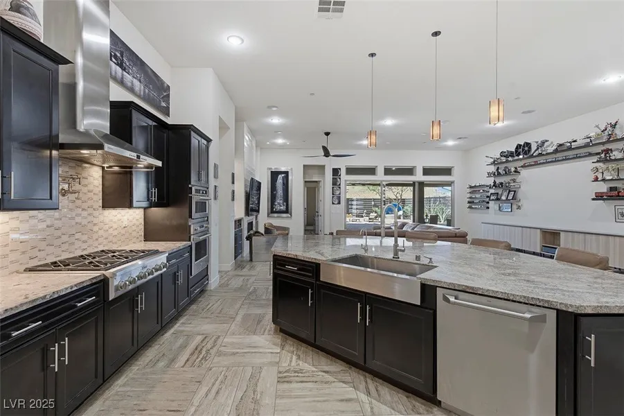 Welcome to where modern design meets relaxed luxury on a full acre of possibility. This beautiful home offers sophistication & space, featuring an attached casita w/living rm, kitchen & bath-ideal for guests, man cave or in-law suite. Inside, every detail impresses! The great room opens w/sliding glass walls, blending indoor & outdoor living seamlessly. The chef’s kitchen is a showpiece, top-of-the-line appliances, oversized island, butler’s pantry & walk-in pantry-all designed for function & flair. Each room is oversized w/12' ceilings throughout & filled w/light & rich finishes. The primary suite is pure indulgence w/dual vanities, make-up table, shower & soaking tub. Out back, entertain in style-a gorgeous covered patio, outdoor kitchen, fire pit & multiple sitting areas. Plus, RV parking w/hookups, a gated secondary drive & fully permitted 240sqft shed perfect for home office, game r...