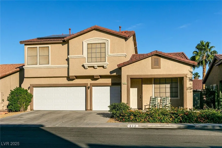 Comfortably resting in Henderson, this prime estate promises complete privacy and is in close proximity to Green Valley Ranch Resort, shopping, dining, freeway access and Harry Reid airport. This dynamic floor plan offers separate living spaces with a front formal living room, in addition to a generous size family room that sits adjacent to the kitchen. This functional kitchen provides granite counter tops with an island that has a pull up breakfast bar for quick eats with a dining area off to the side. There is extra kitchen cabinet space for all of your pots/pans with a pantry closet. Downstairs also provides a guest bedroom that offers convenience for family members. Upstairs finishes off this home with a sizable loft that can be used in a variety of ways, with the rest of the bedrooms and laundry room completing this home. The back yard offers a covered patio to enjoy your shaded mor...