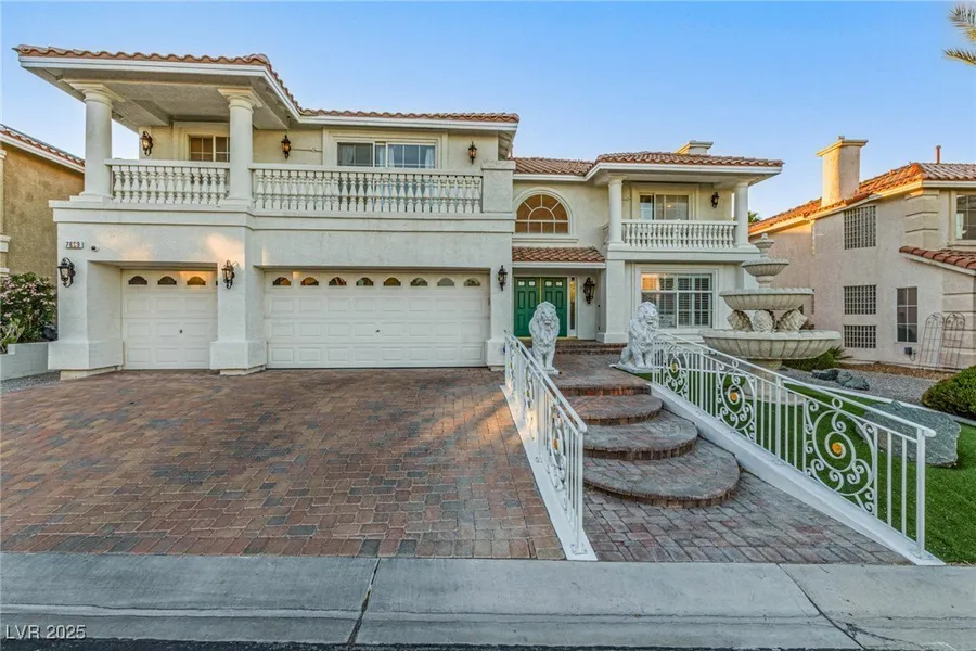 Stunning and beautifully maintained gated two-story home with nearly 5,000 sq ft of living space, a sparkling pool & spa, and luxury marble lions at the front entry and surrounding the pool area. Interior features include brand-new carpet throughout, a finished basement, formal living room, and a separate family room with a custom bar—perfect for entertaining. The gourmet kitchen offers granite countertops, Home includes 6 bedrooms, a luxurious master suite, office, balconies, and central vacuum. Offered fully furnished with premium custom Italian chandeliers, custom Italian furniture, and new marble flooring, cost 45k a few months ago! The living area also showcases two hand-carved 400-lb marble lions—rare statement pieces enhancing the home’s unique luxury appeal. Furniture negotiable,REDUCED $350,000 OPEN HOUSE SUN 12-6-2025 1PM TO 4PM- HOME ACTUALLY HAS 6 BEDROOMS, BEST BUY IN T...