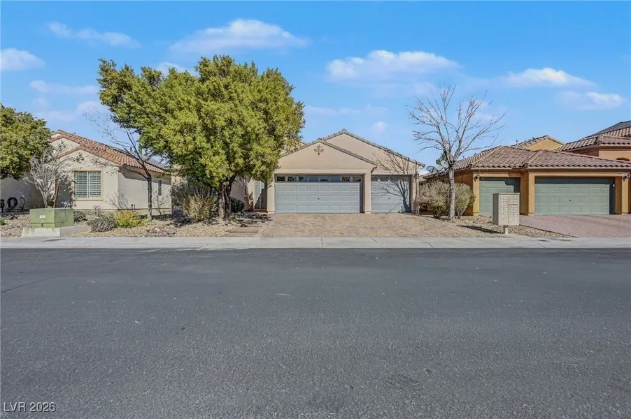 TIP TOP 89052 Single Story!! Welcome home to this bright and open 3-bedroom beauty with vaulted ceilings and a great mix of tile and wood plank flooring throughout. You’ll love the spacious kitchen with granite counters, stone backsplash, plenty of cabinet space, built-in double ovens, and a cooktop. The huge island opens up to the great room — perfect for family time or entertaining friends. Enjoy the large living area with a wall of windows looking out to your low-maintenance backyard featuring synthetic grass, pavers, and a covered patio for relaxing outdoors. The roomy primary suite includes a separate tub and shower plus a big walk-in closet. You’ll also find two generously sized secondary bedrooms and a hard-to-find 3-car garage for all your toys or extra storage. All this in one of the happiest gated neighborhoods in Las Vegas — close to I-15 and 215 freeways, dining, shopping, an...