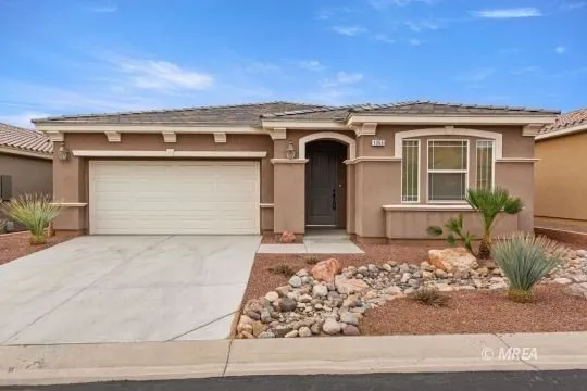Situated along the 5th fairway and green of the Canyons Course, this well-maintained home features one of Mesquite's most popular and functional floor plans with separated bedrooms,formal dining, and comfortable indoor-outdoor living. The kitchen includes granite countertops, abundant cabinetry, tile flooring, and all appliances,plus an additional refrigerator and washer/dryer. Adjoining the kitchen is a dinette area, which opens to a private outdoor patio, ideal for casual dining. The formal dining room provides added entertaining space and overlooks the patio. The primary en suite with large bathroom and dressing area is positioned for privacy, while two guest bedrooms and a full bath are set apart for convenience. Additional features include built-in garage cabinets and low-maintenance desert landscaping. The back patio offers sweeping views of the fairway and green, perfect for enjoy...