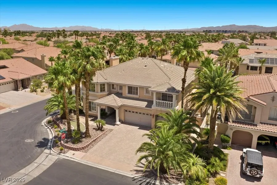 Southern Highlands Luxury, 5,383 Sq Ft, Guard-Gated Royal Highlands Community, Desirable Corner Lot. This elegant 4-bedroom, 4-bath home in one of Southern Highlands most prestigious guard-gated enclaves. A spacious first-floor den offers easy conversion to a fifth bedroom. Inside, enjoy soaring vaulted ceilings, fresh carpet throughout, three fireplaces, formal dining, a loft, and a family room with wet bar. The chefs kitchen features granite countertops, stainless steel appliances, a center island, double ovens, and generous cabinetry. The expansive primary suite includes a cozy fireplace, retreat area, massive walk-in closet, and private balcony. Entertainment continues in the finished basement with a full movie screen, pool table, and walk-out patio. Step outside to a resort-style backyard with a sparkling pool, tropical waterfall, raised spa, putting green, and covered patio. Additional highlights include a 3-car garage, 2nd bedroom balcony, and partial plantation shutters.