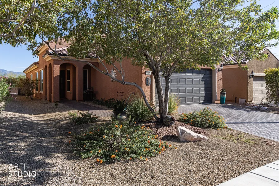 Welcome to 709 Country Grove Lane - this popular Aster model 2 bedrooms, 1 flex room and 2 bathrooms. The home features classy sealed pavers on the driveway, walkway and in the backyard. Step inside to find premium wood-like tile flooring with bedroom carpeting. Enjoy the plantation shutters in the main living space, ceiling-fan light fixtures in both bedrooms/living room and the solar tube in the hallway that brings in natural light. This spacious kitchen features granite countertops, ample cabinetry with hardware, a pantry and stainless steel appliances included at no extra cost. From the kitchen and dining area you can take in the surrounding mountain views. The primary bedroom offers mountain views, a double-vanity, a walk-in closet and a custom tile walk-in shower. The laundry appliances are included at no additional cost enjoy convenient upper cabinetry. The garage is double-insula...