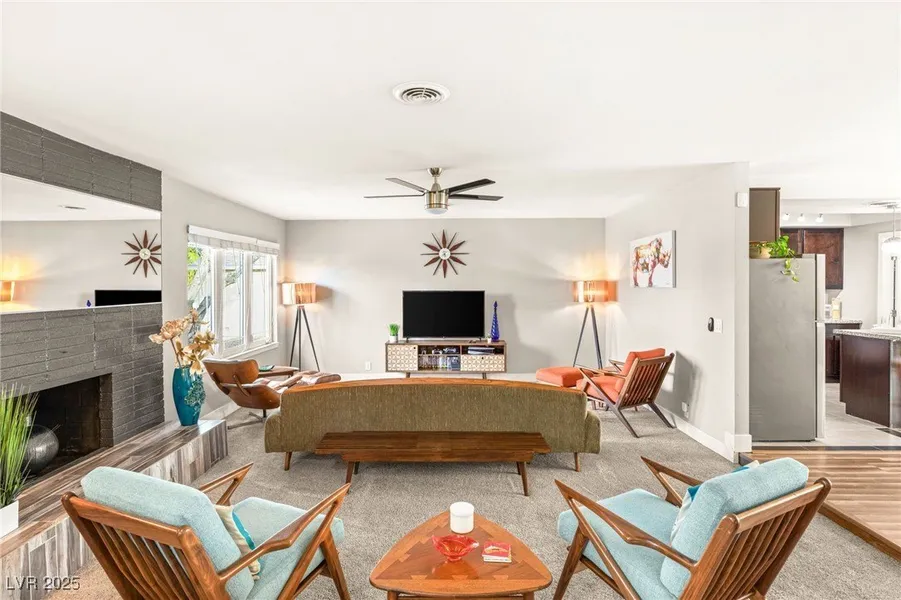 Upgraded in 2018, the home boasts a brand-new roof, new pool plaster, updated deck and equipment and a completely renovated kitchen. Set on a 9,148 sq ft lot with no HOA, this close-knit community hosts quarterly events + monthly socials. With no two-story neighbors behind and just minutes from the Strip, dining, and shopping, this move-in-ready home offers the perfect blend of Palm Springs character and modern comfort—a true Las Vegas retreat.