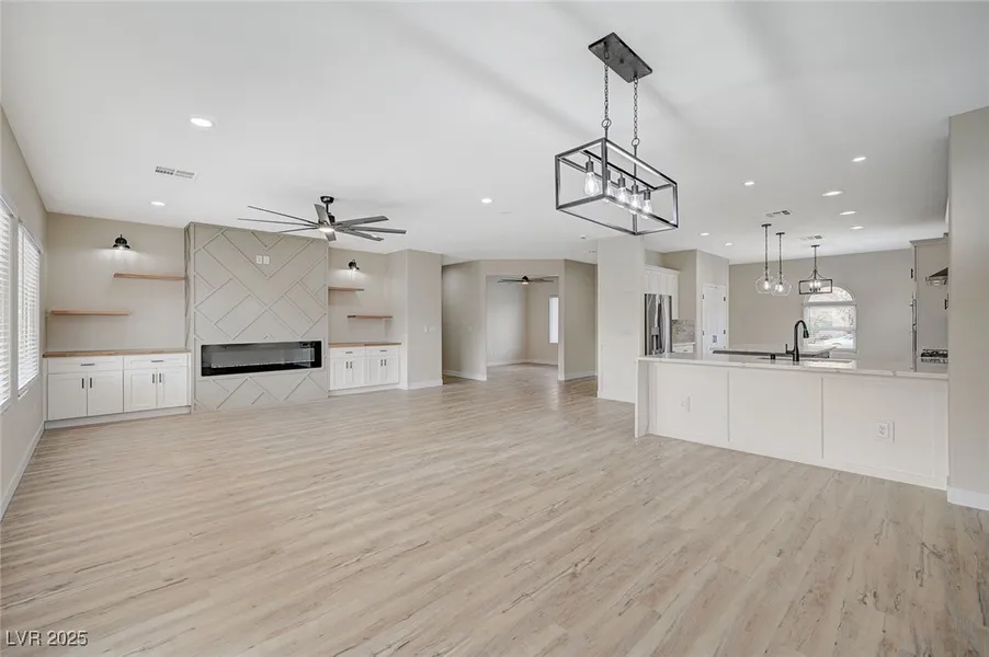 Come see this beautiful "remodeled" home located in the highly sought-after Sun City Anthem, voted the top active 55+ community in Nevada! This Lincoln Model Offers an eye-catching custom designer wall fireplace centered in the Family/Living Room. Large Kitchen and Dining Room for family gatherings and an Office/Den that completes this popular model. Some of the home's top features are: 9ft ceilings, large kitchen island, 2 car garage w/epoxy flooring. New AC unit, interior paint, cabinets, light fixtures & hardware. New gourmet kitchen with quartz countertops & backsplash. ALL NEW stainless steel kitchen appliances. Large laundry room w/custom cabinets and sink. The Primary bedroom has a large walk-in closet. New custom inspired bathrooms, with a walk-in shower that includes a wet area with floor to ceiling tiled walls! Nice clean low maintenance backyard w/an oversized covered patio. New landscaping gives you lots of color & space to relax and enjoy your private backyard & Courtyard!