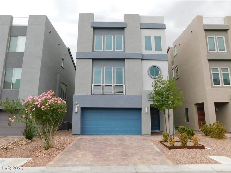 Roof top views of mountains and glittering strip lights** Contemporary design, tastefully upgraded home. Kitchen upgraded with over sized, waterfall island, quartz countertop, upgraded cabinets and appliances with a huge walk in pantry. A suite at 1st floor providing in-suite bathroom. Separated from the rest rooms. Oversized great room with cozy energy smart fireplace. Central location, next to 215 beltway, Durango Casino. Gated community provides park, guest parking.