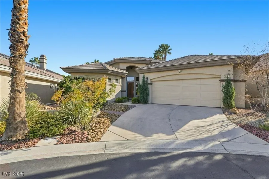 Summerlin Single Story home located in gated Canyon Ridge Community~2 Bed 2 bath plus den~Spacious and open floorplan, living room with vaulted ceilings, beautiful stone fireplace & mantel~Den features built-in bookcases & office/desk~Kitchen w/garden window, breakfast bar & island, walk-in pantry~Massive amounts of storage in kitchen and full laundry room~Primary walk-in closet w/custom built-ins~Secluded yard with covered patio, built-in BBQ & beautiful POOL & SPA too! Cul-de-sac location in great Summerlin community close to TPC & hospital.