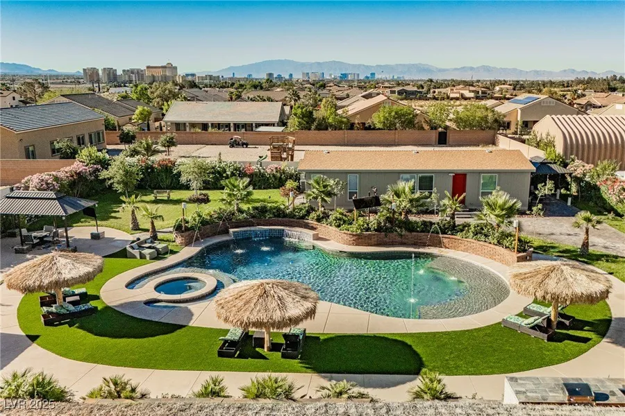 This Stunning resort property with a main house and secondary house on over 1 acre lot included a total of 8 bedrooms 6 bathrooms for total living area of 5577 sqf. Custom pool/spa 1 year new with 80' Papala and 3 new papala's around pool providing shady retreat for outdoor dining. Secondary house Built in 2023 has own address 120 Chartan A Ave. great for guests or rental opportunity. RV Parking for up to 6 RV including hookups for each RV. The backyard kitchen has 2 gas grills, 1 charcoal grill, 2 residential ovens, 1 countertop cooktop, 4 commercial ice makers that make 600lbs of ice per day, 5 SINKS, 3 FRIDGES, ONE DEEP FREEZER, 3 DISHWASHERS, 2 PANTRIES, Perfect for entertaining. Property also features 90!! FRUIT TREES enough fruit to open your own personal fruit stand. Outdoor wall has 40 100 w led lights along with 20 LED on home to light up yard for entertaining. Don't miss thi...